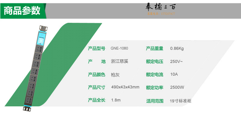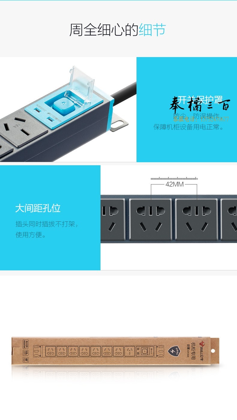 公牛(BULL)GNE-1080插座 PDU机柜接线板 电源插座拖线板10a/16a可选 带开关铝合金排插10A 1.8米