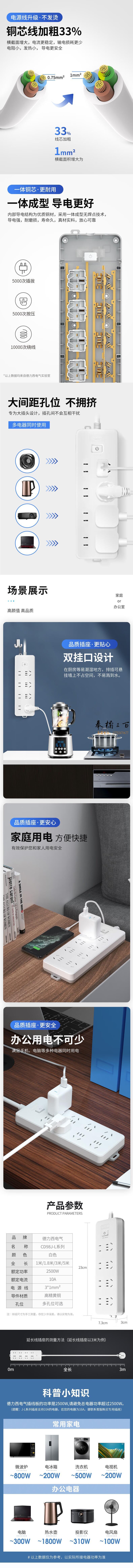 德力西(DELIXI)新国标插座 带开关插线板/插排/排插/拖线板/插板/接线板 4位总控 3米 K4X